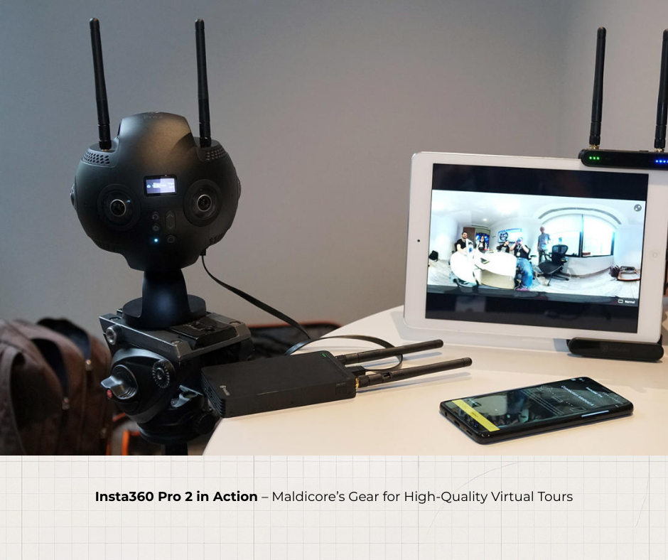 Insta360 Pro 2 camera setup used by Maldicore for creating virtual tours of resorts and hotels.