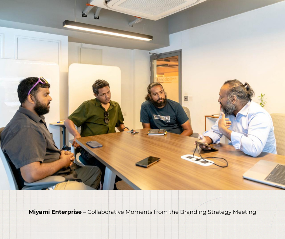 Snapshot of the Miyami Enterprise branding meeting with collaborative discussion in action.